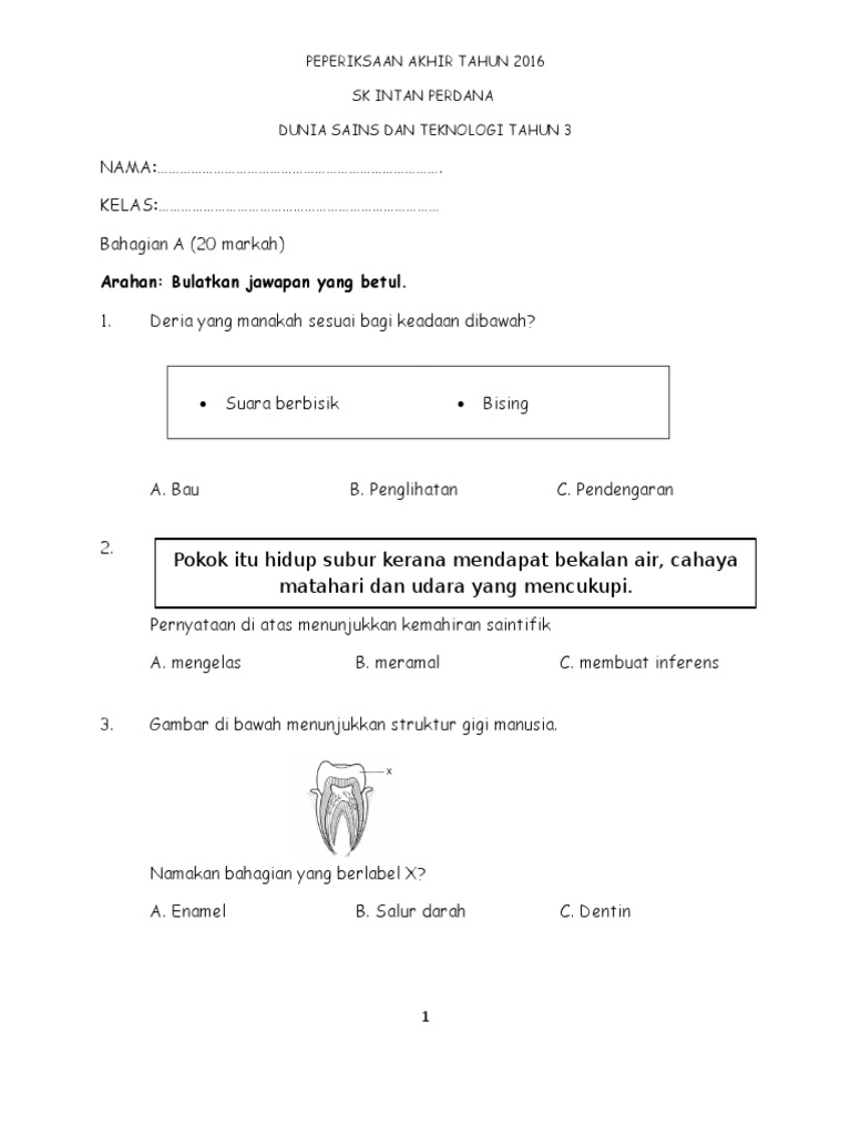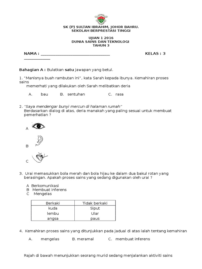 Soalan Peperiksaan Dunia Sains Dan Teknologi Tahun 3