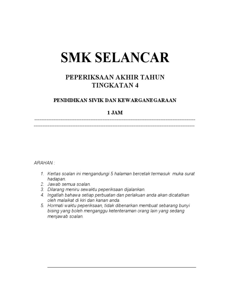 Kertas Soalan Sivik Tingkatan 5