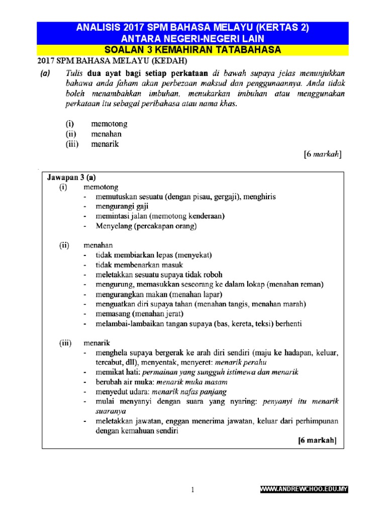 Soalan 3 Kemahiran Tatabahasa Analisis 2017 Spm Bahasa Melayu Kertas 2 Antara Negeri Negeri Lain