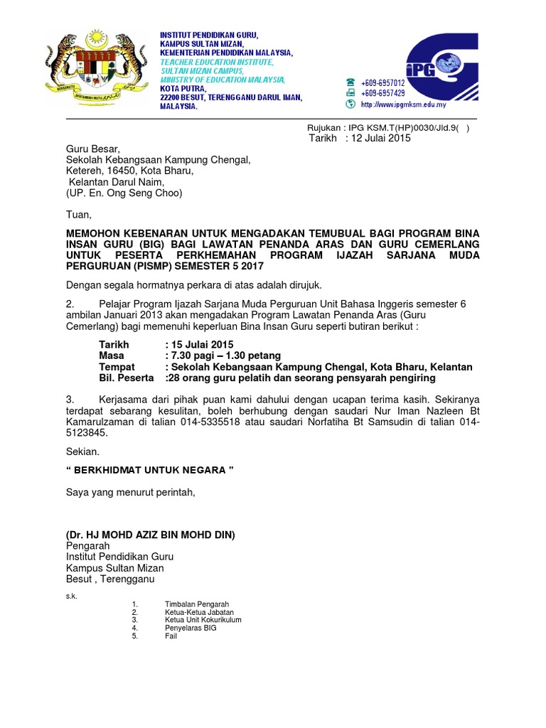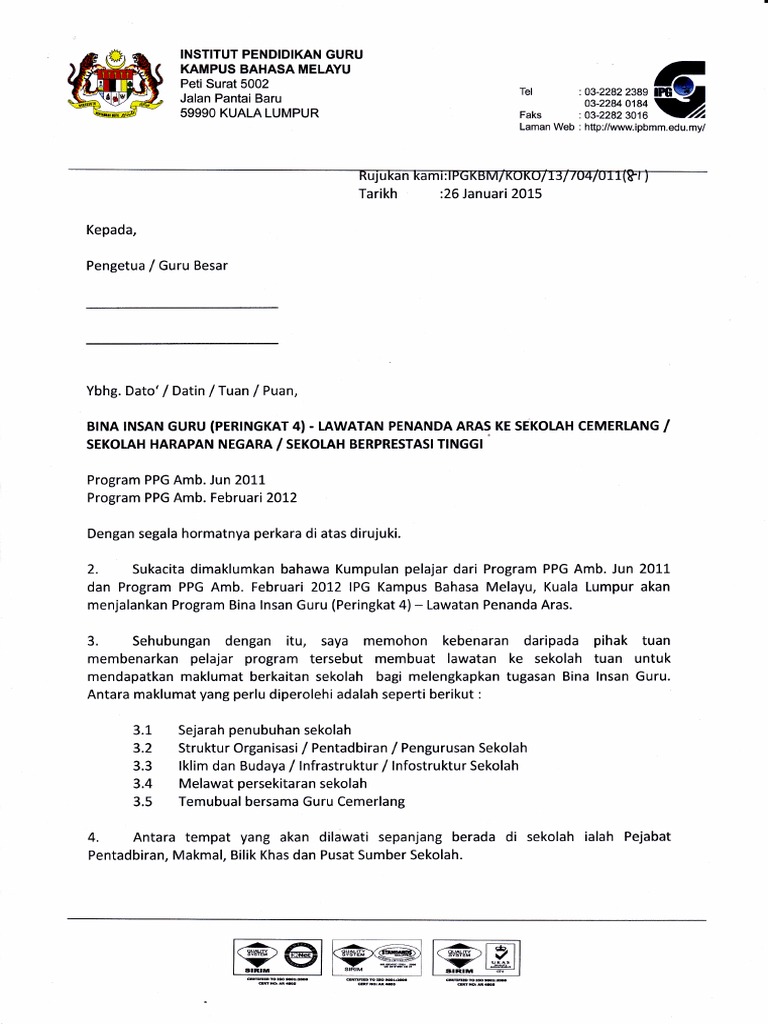 Contoh Surat Rasmi Lawatan Penanda Aras Surat Rasmi G