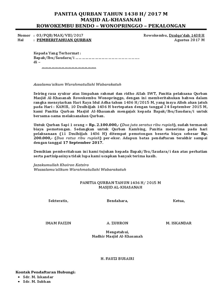 Contoh Surat Qurban