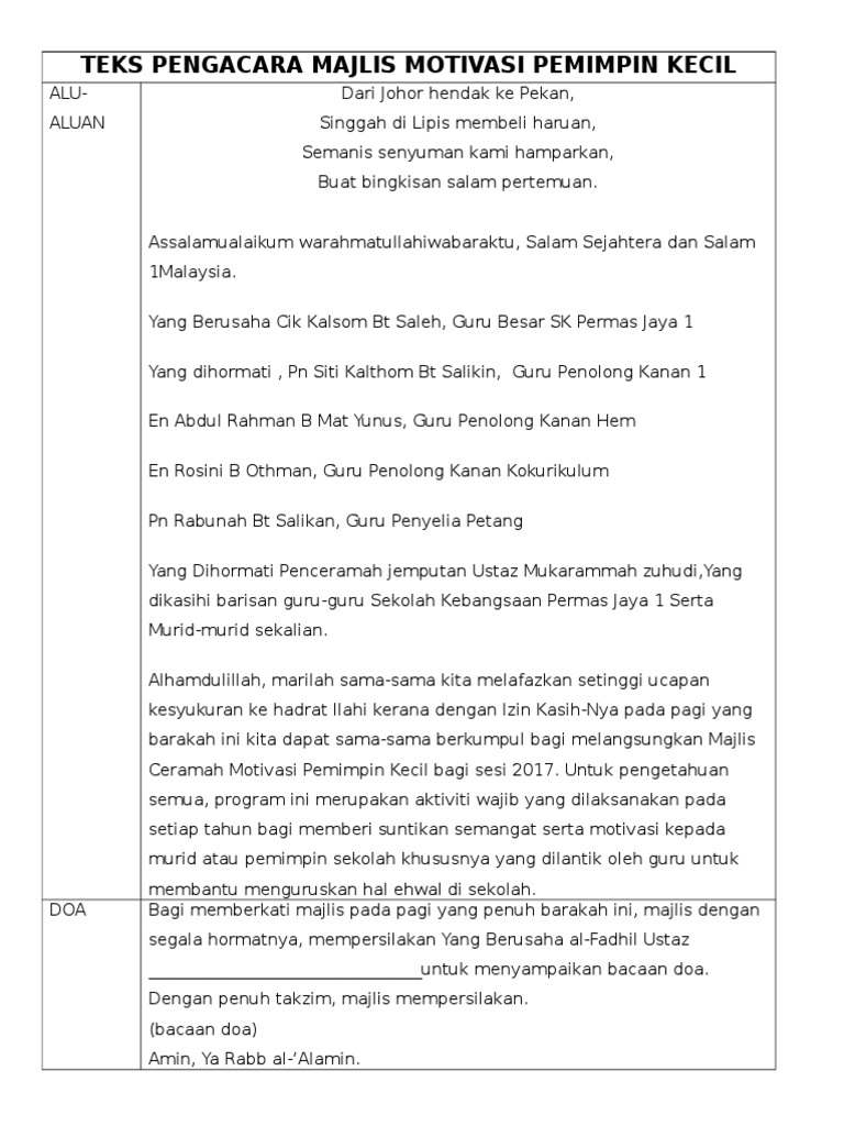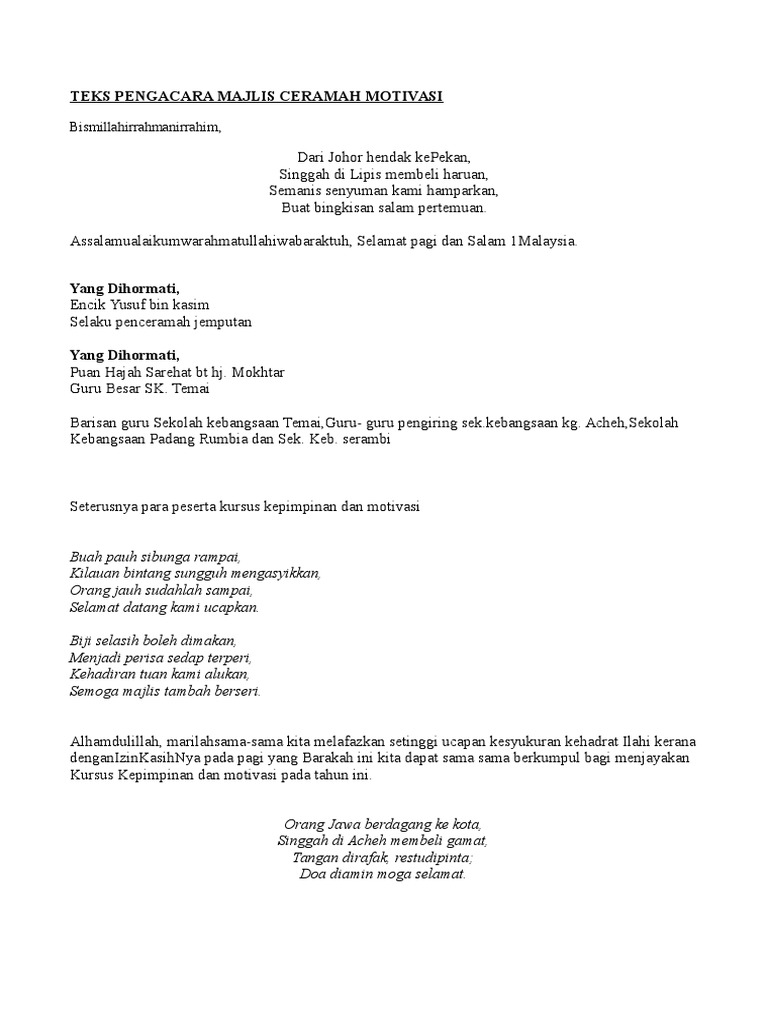 Teks Pengacara Majlis Ceramah Motivasi Docx