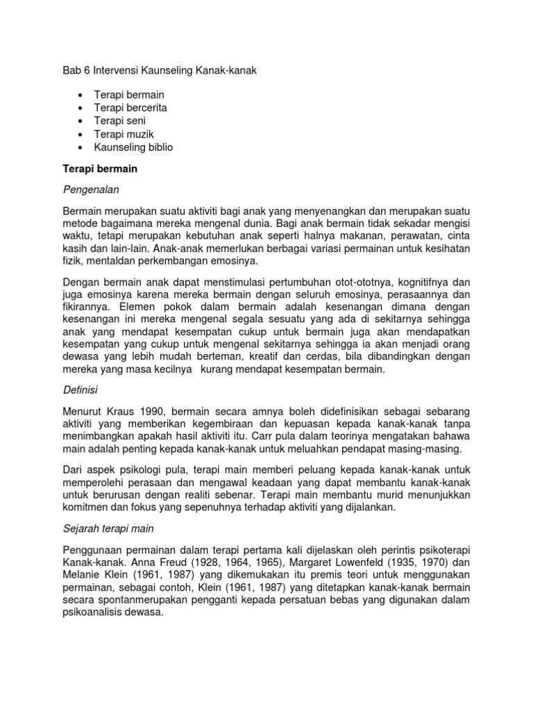 Terapi Intervensi Kaunseling Kanak