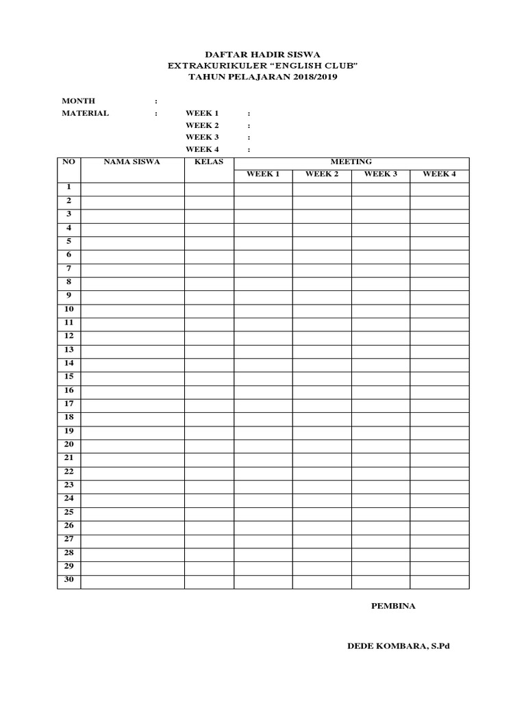 Daftar Hadir Training Motivasi Hadapi Uan 2011