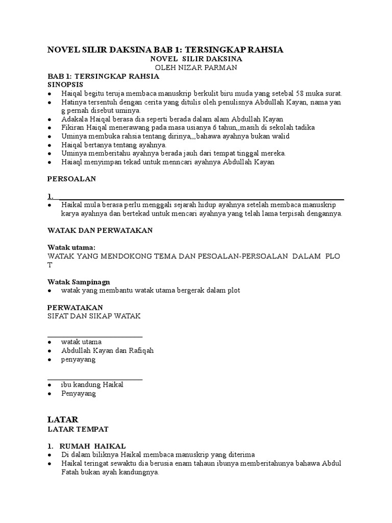 Nota Novel Silir Daksina Lengkap